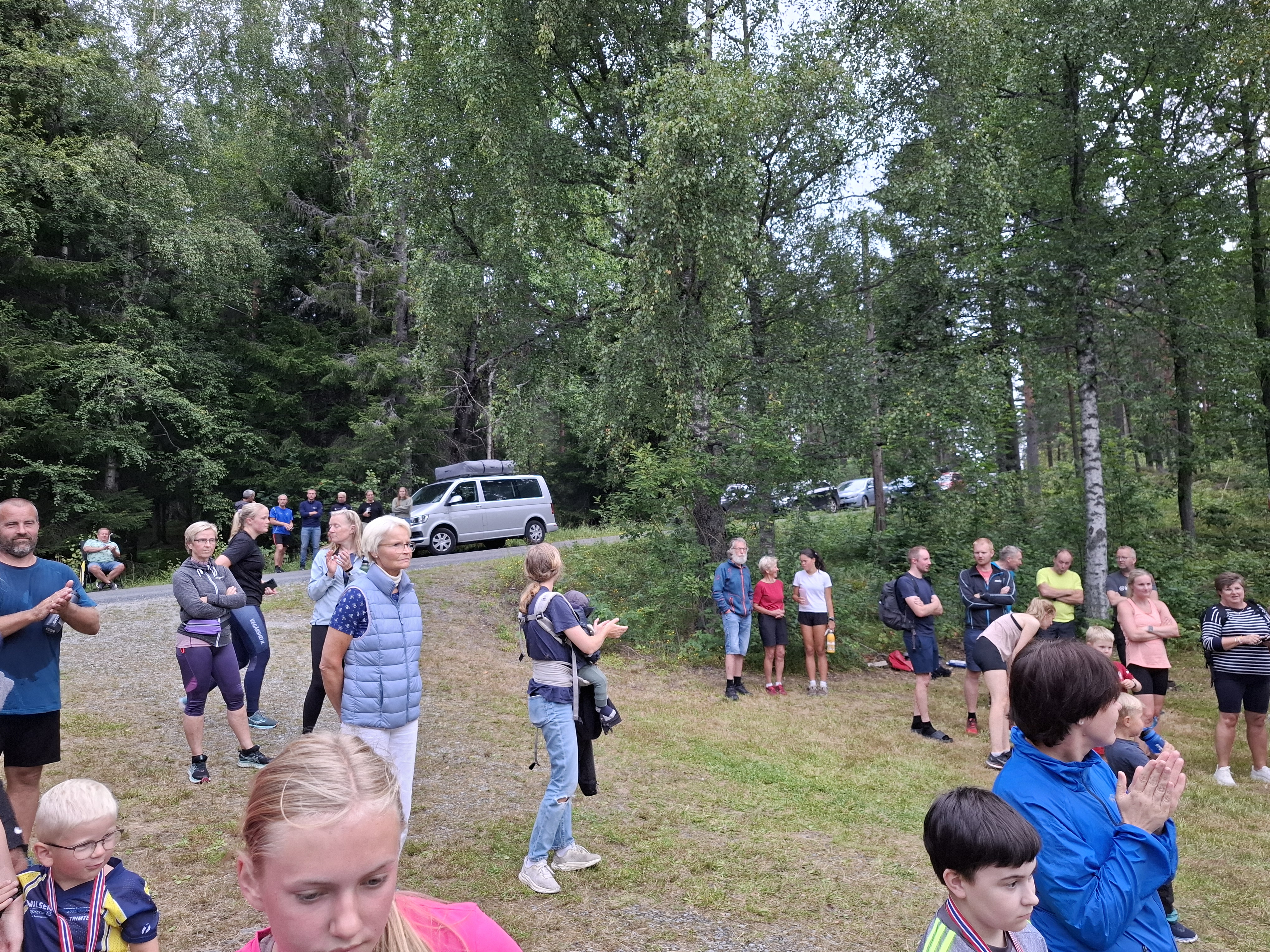 Det var folksomt og god stemning da Grensejoggen - Gunnars minneløp ble arrangert 6. august 2024. 77 løpere deltok, de sprang småtroll, 2 km. eller 5 km. Vemund Myhre og Tuva Sines var raskeste herre og dame.